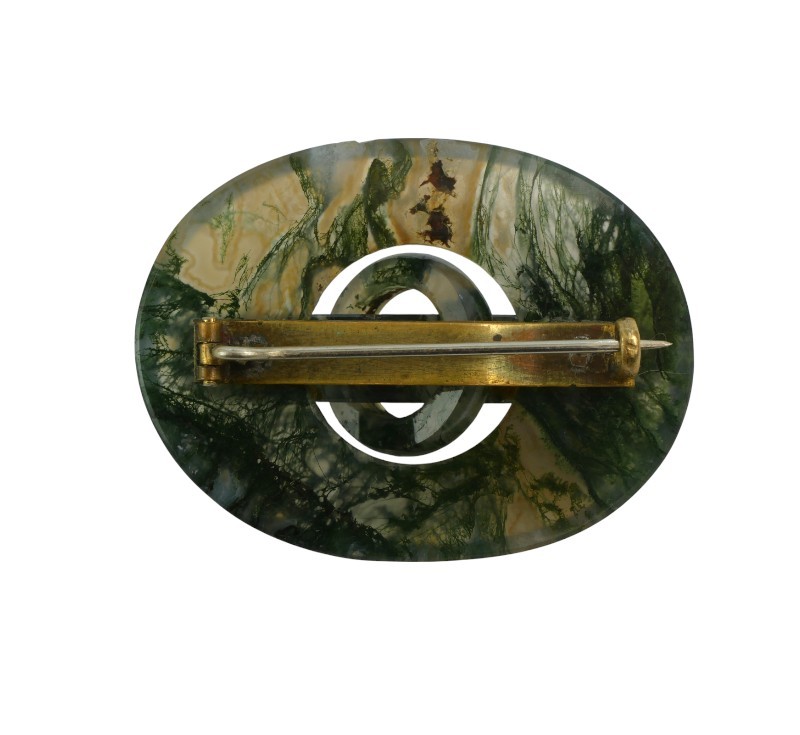 Oválná brož vybroušená z mechového achátu