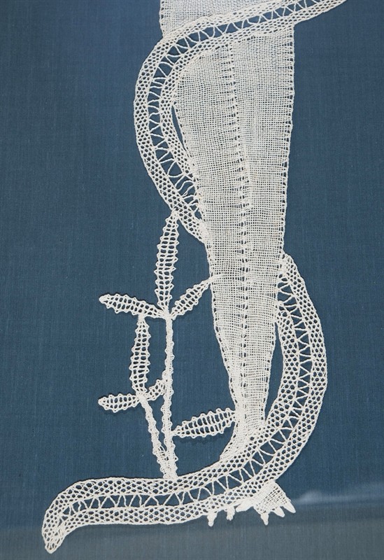 Paličkovaná krajka Eva s hadem, rám 68,5 x 29 cm