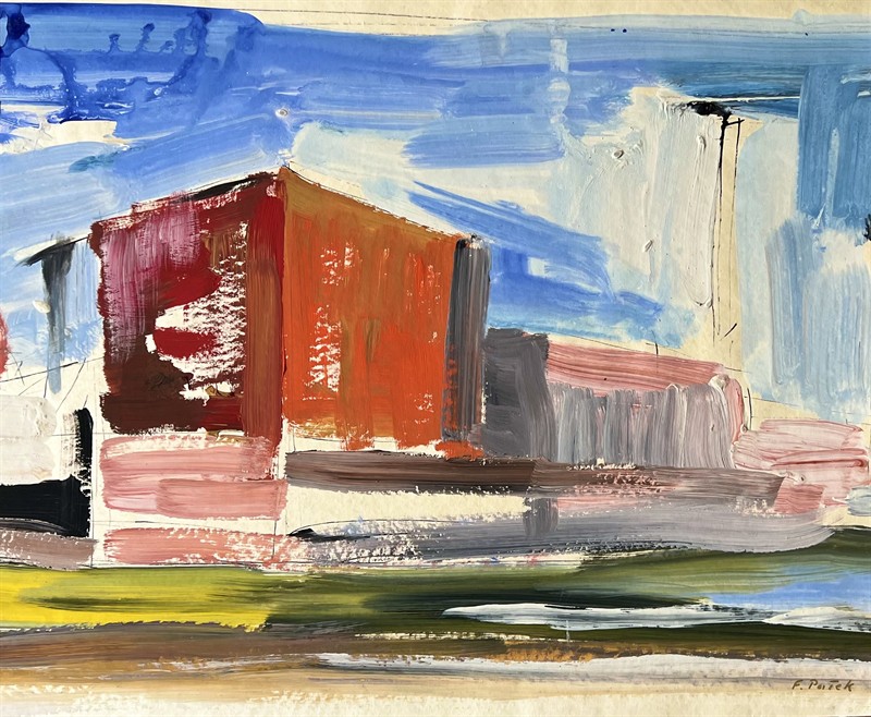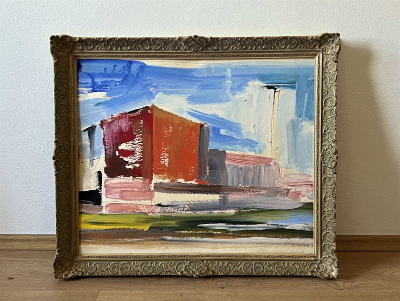 F. Pašek (*1922) - Barevná továrna, kombinovaná technika, rozměr 50 x 60 cm (60 x 70), rámováno v krásném slohovém rámu, signováno. Akademický výtvarník, sochař a restaurátor, studia na VŠUP u profesorů Otto Eckerta a Jana Kavana. Řada jeho děl byla realizována v architektuře - Kalich metro Želivského, Čápi park u České televize, dále barokní faksimile metro Malostranská a pro zahradu zámku v Tróji. Věnoval se také tvorbě malířské, kde byl např. inspirován motivem městských a industriálních krajin s vystižením atmosféry výtvarného díla. Působil jako profesor na pražské Akademii a byl členem komise Mánesa.