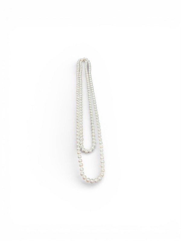 Šňůra z mořských perel. Čechy, začátek 20. století. Délka: 80 cm, průměr perly: 0,8 cm.