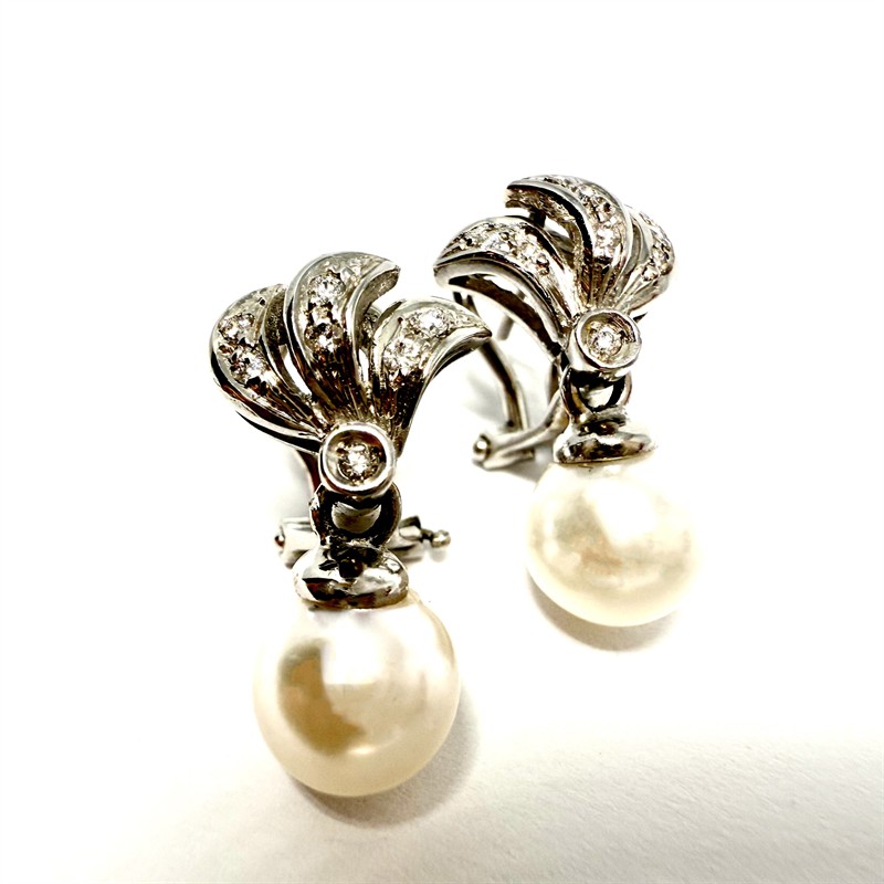 Perlové náušnice s brilianty z bílého zlata