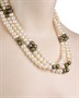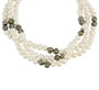 Perlový náhrdelník je tvořený ve třech řadách ze sladkovodních bílých a tahitských perel. Zapínání je zhotoveno z bílého zlata ryzosti 585/1000 (punc labuť). Délka náhrdelníku je asi 50 cm.