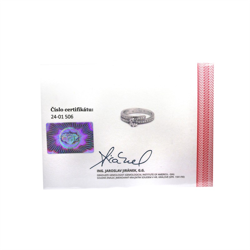 Prsten s diamanty 0,56 ct (E, IF) a 0,23 ct + certifikát