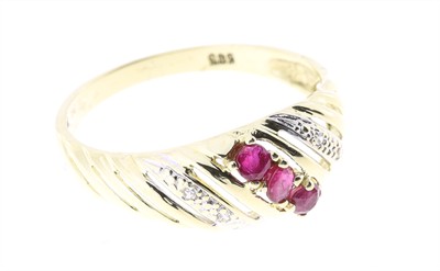 č. 180 206 Prsten ze žlutého zlata s rubíny a diamanty