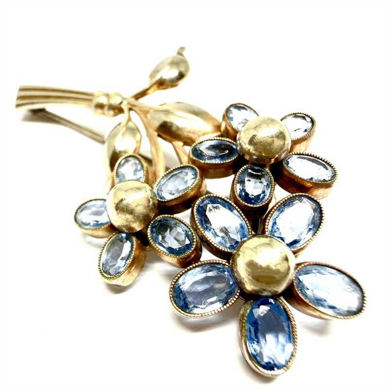 Prvorepubliková brož s modrými kameny - kytice