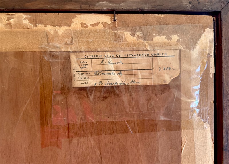 Olej na kartonu fix. na dřevě o velikosti 50 x 69 cm, signováno a datováno vlevo dole “ R. Lauda 1908”, rámováno, na rubu štítek z “Díla “ s popisem motivu, techniky a vlastníka. Richard Lauda (1873 - 1929) byl významný český maliř, studoval na AVU v Praze u prof. Pirnera, byl členem Spolku Mánes, Hollar a j. Zastoupen je ve sbírkách Ng v Praze, Alšovy jihočeské galerie v Hluboké nad Vltavou, Galerie hlavního města Prahy a Husitského muzea v Táboře