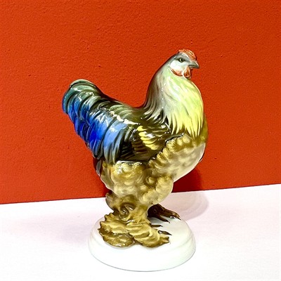 Nádherná barevná porcelánová plastika slepice Rosenthal, Německo, návrh: O. Obermaier, 50. léta 20. století, výška : 13 cm