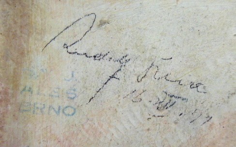Terakota. Autor: Rudolf Březa (1888-1955). Signováno na levém rameni. Další signatura, vlastnoruční od autora, psaná tužkou na spodní straně s datací 16.3.1932 a razítko Spolku výtvarných umělců ALEŠ. Terakotová bysta slavného českého malíře Mikoláše Alše (1852-1913). Na nízkém obdélném podstavci. Československo, rok 1932. Výška 24 cm, rozměr podstavce 16,5 cm x 12 cm.