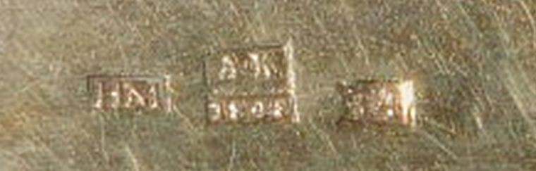 Stříbrná krabička na šňupací tabák, puncováno 84 zolotniků, jezdec na koni (Moskva) a mistrovské AK a HM. Dekor na všech stranách niello, používáním opotřebeno, niello místy setřelé, ale při stáří téměř 200 let pochopitelné. Rozměry 8x4,5x2 cm, váha 81,4 gramu.