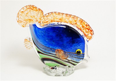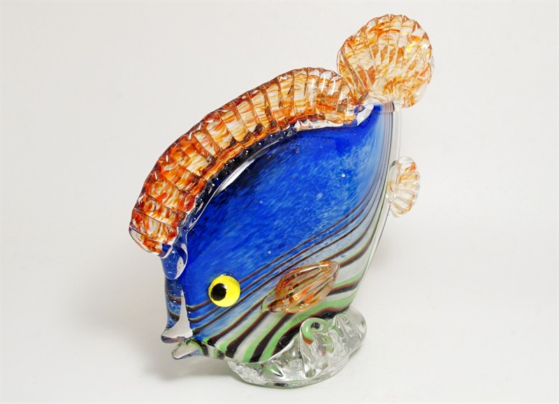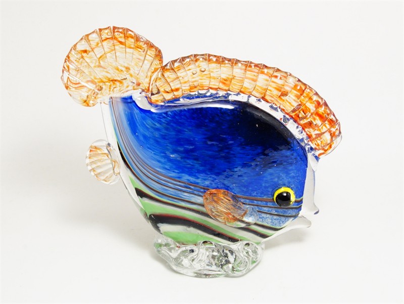 RYBA - figurální plastika barevné hutní sklo, sklárna ŽBS