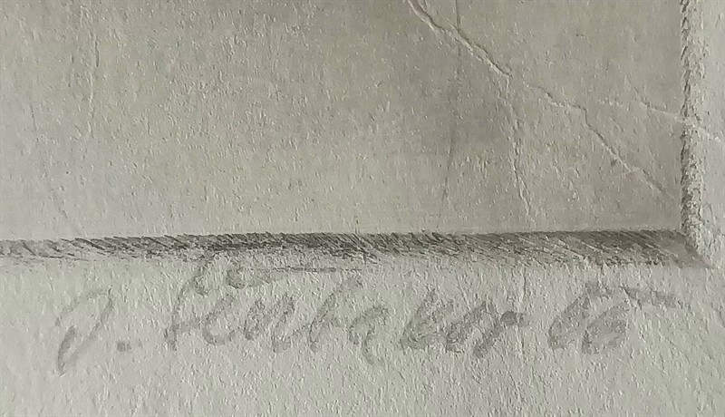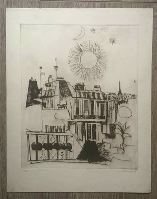 Suchá jehla, rozměr 33x27cm, celkově 42,5x33 cm. Signováno, datováno 1966. Vzácný velký list, pouze 10 ex. z autorova pobytu ve Francii.