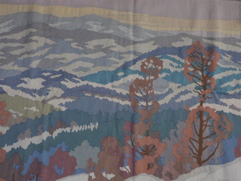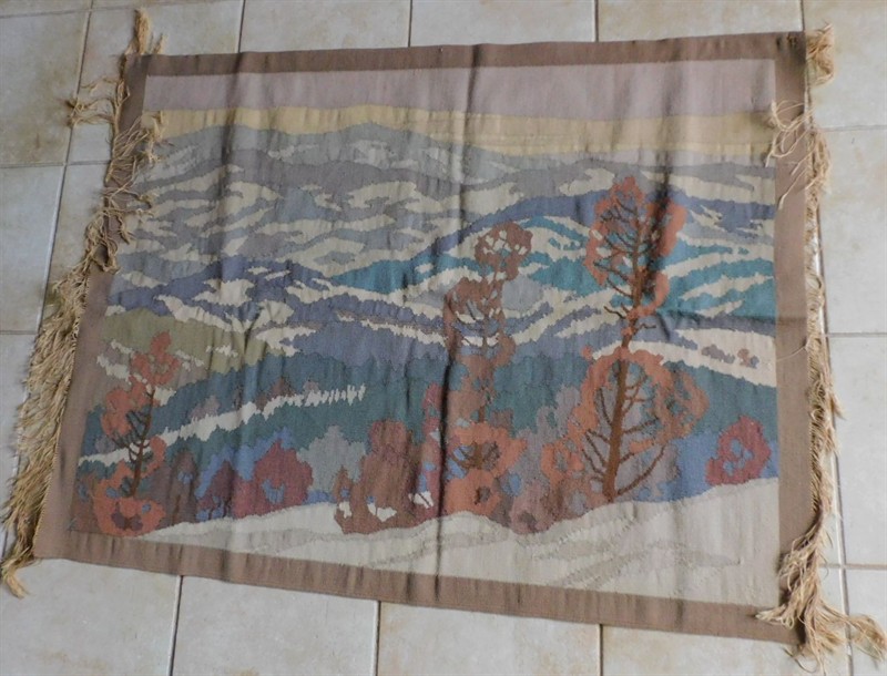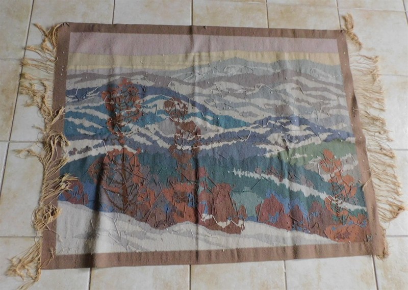 Nabízím gobelín ze začátku 20. století, formát (měřeno i s třásněmi ) 80 x 120 cm. Neznačeno , ale jedná se podle provedení i barevnosti téměř jistě o výrobek MGM - Moravská gobelinová manufaktura, Valašské Meziříčí, Schlattauer. Návrh snad Jaro Kučera. Velmi dobrý stav, perfektní, včetně třásní.