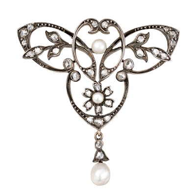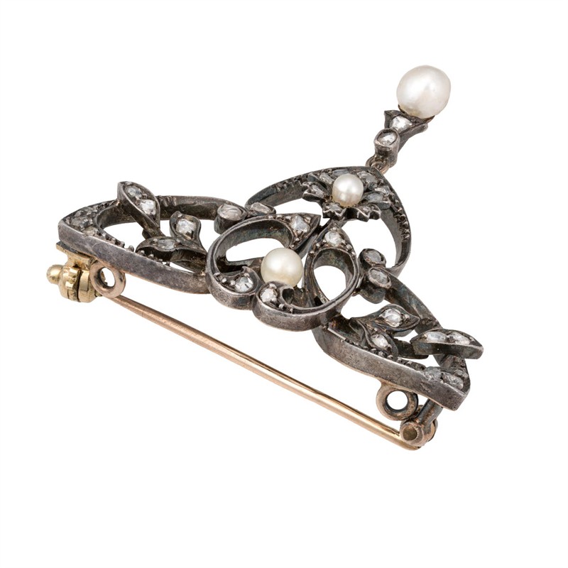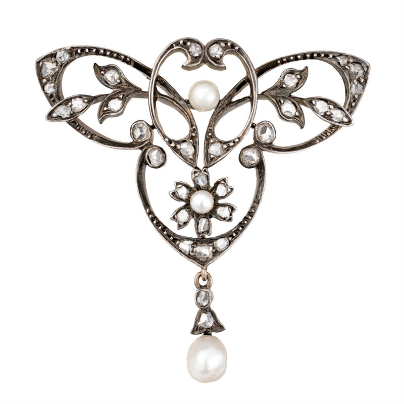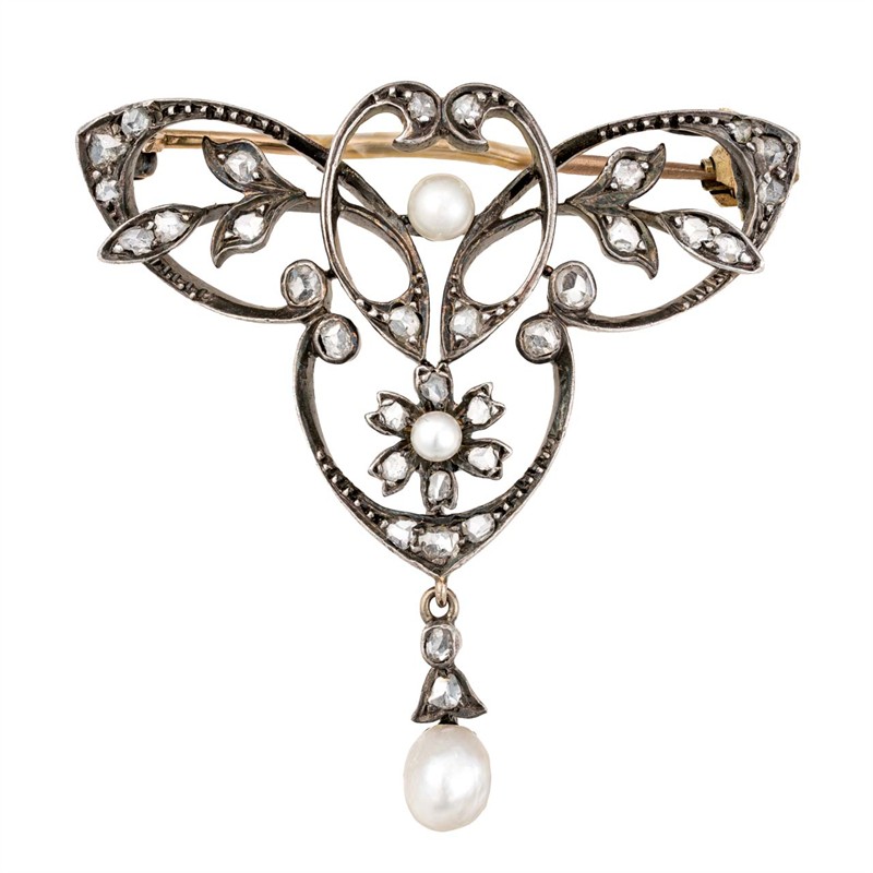 č. 179 620 Secesní brož s perlami a diamantovými routami