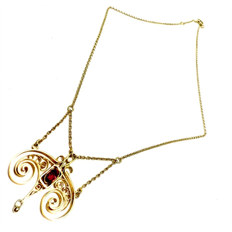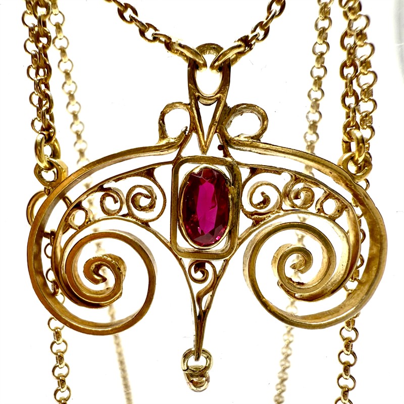 Secesní stříbrný zlacený kolier s rubínem