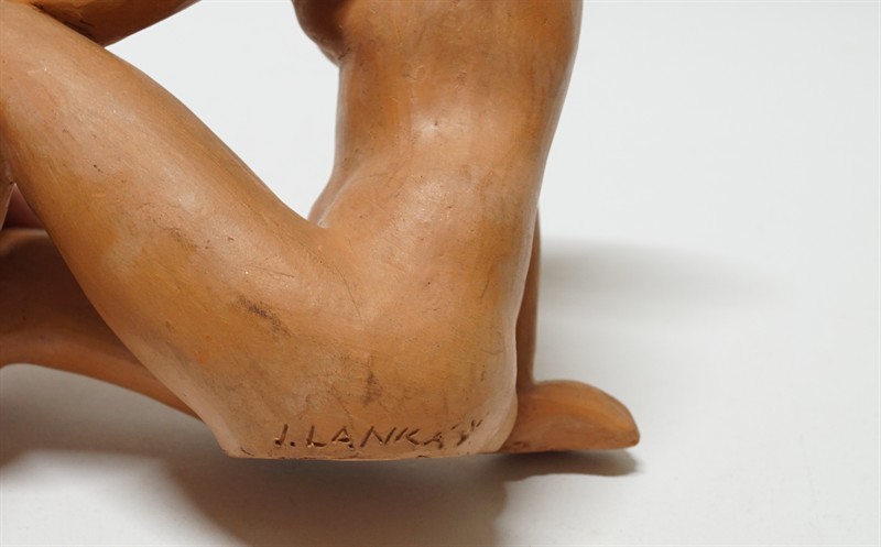 Líbivá keramická plastika - Sedící dívka z poloviny minulého století od sochaře a cizeléra - Julius LANKÁŠ (*1909 Vídeň +19991 Praha), žák J. Horejce a K. Dvořáka. Soška jemná v detailech působí lehce, uvolněně, je provedena z neglazované terakoty, na soklíku je vtlačená signatura. Dobrý stav, rozměr - d. 25 x 22 x 10cm