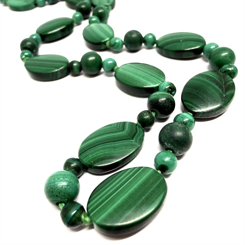 Půvabné, elegantní náhrdelníky z drahých kamenů v zelené barvě. Jedná se o náhrdelník z malachitů a avanturínů. Délka náhrdelníku z malachitů je 49 cm, avanturínový 46 cm. Drahé kameny jsou přírodního původu. Výborný stav.