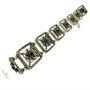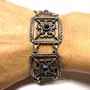 Efektní, výrazný set stříbrných šperku - brož a náramek. Šperky byly zhotoveny ze stříbra ryzosti 835/1000, o celkové váze 46,75 g. Rozměry brože 2,3 x 2,3 cm, délka náramku 18,5 cm. Funkční pojistný řetízek. Autorská a puncovní značka. Výborný stav.