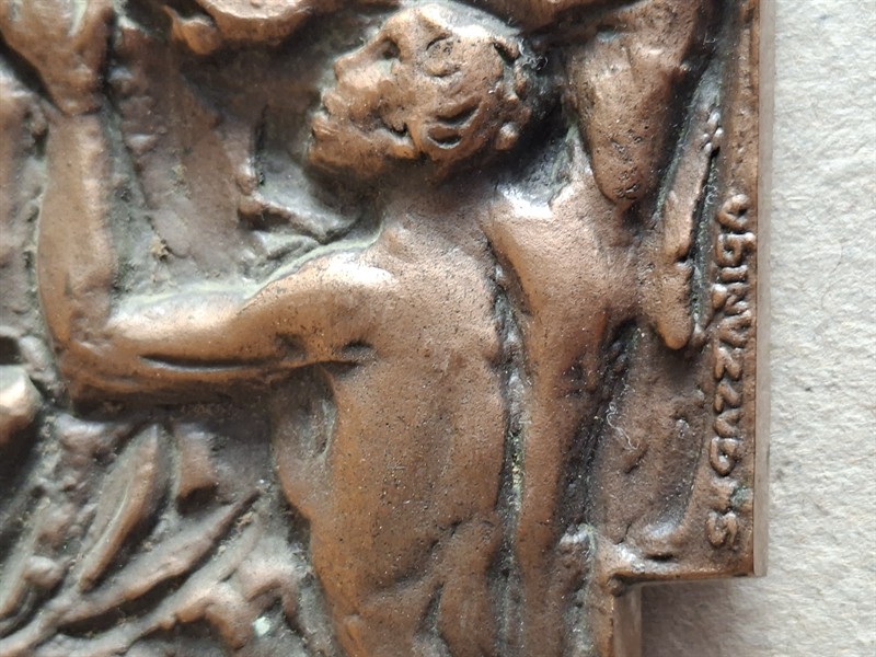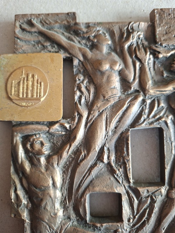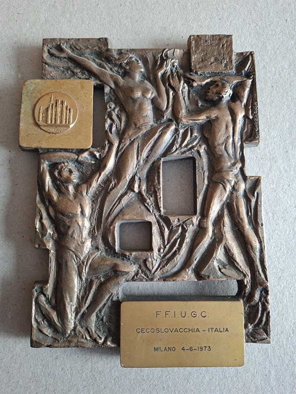 Silvio Gazzaniga - bronzová plastika - fotbal Miláno 1973 Česko-Italie, rozměr 17 x 23 cm, váha 1200 gramů, stav viz foto, sportovní rarita od významného autora.