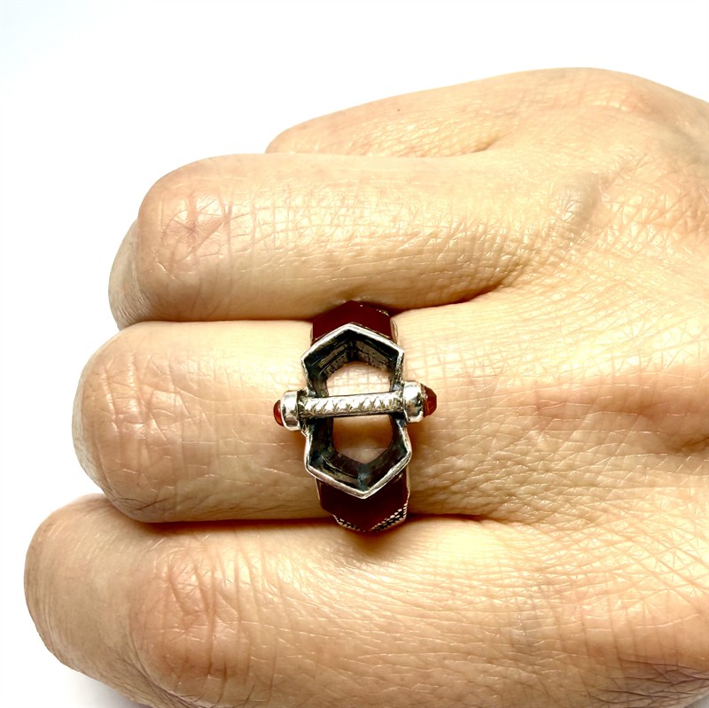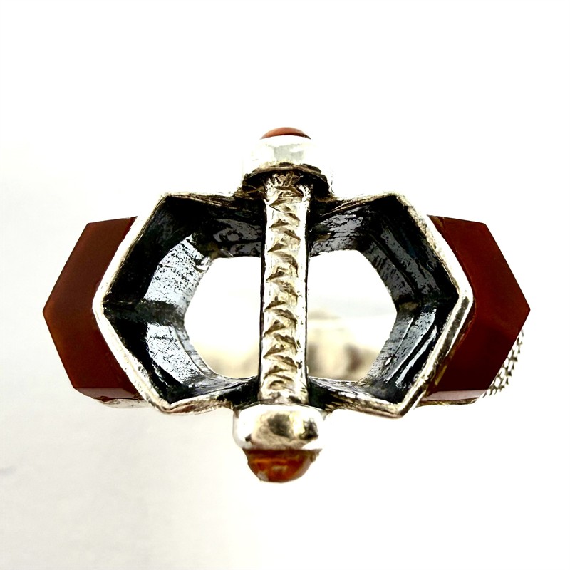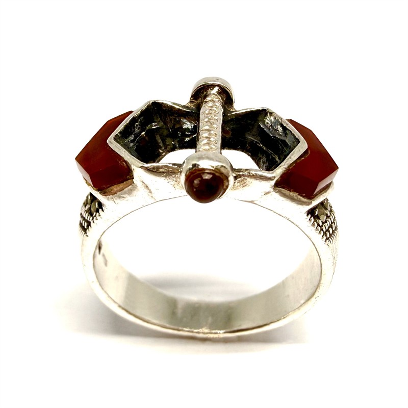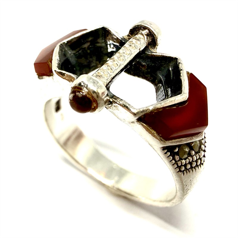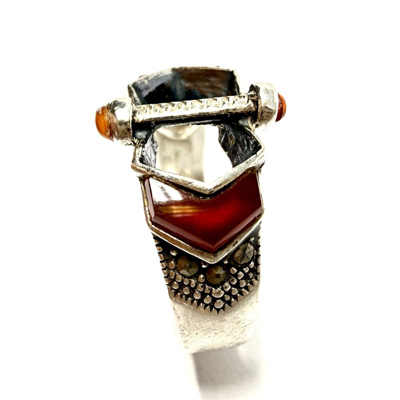 Sříbrný Art deco prsten s karneoly a markazity