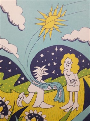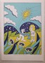 Litografie 15,5 x 22, tisková plocha 13,5 x 18,5 cm. Signováno uprostřed dole. Autor Stanislav Holý (1943-1998), m.j. autor postaviček Jů a Hele.