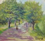 Olejová tempera na kartonu 28 cm x 31 cm. Signováno vpravo dole. Autor obrazu: Stanislav Lolek (1873-1936). Scenérie lidských postaviček míjejících se na cestě alejí v parku. Dobový světlý rám s okrovými linkami a sklem, rám nesoucí stopy mírného opotřebení. Československo 1920 - 1935. Celkový rozměr s rámem 41,5 cm x 44,5 cm.