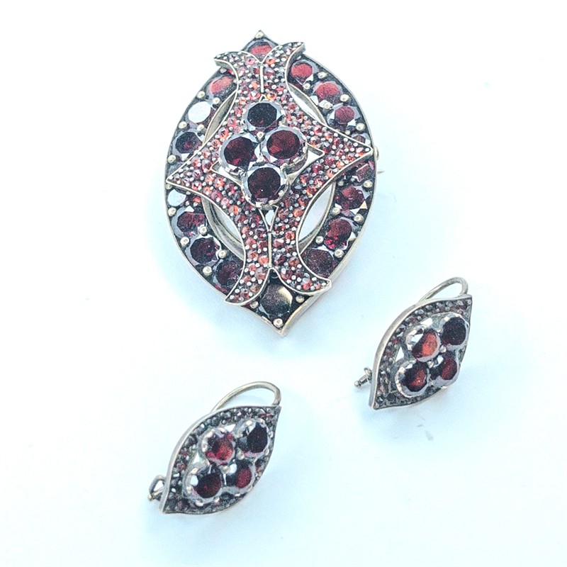 č. 179 235 Starožitná granátová souprava, brož a náušnice