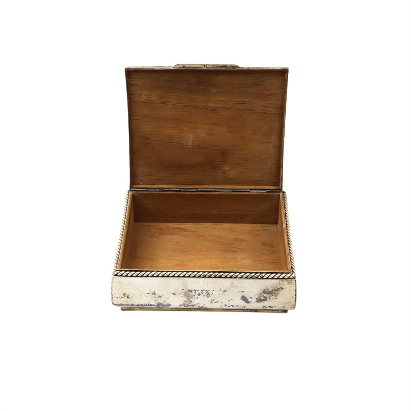 Stříbro 835/1000, celková hmotnost 309,20 g | Rozměry: 12,3 x 10,3 cm, výška 4,7 cm | Mírné oťuky na vrchním víku