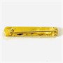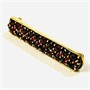 Starožitná, minimalisticky pojatá brož v podobě linie, která je ve třech řadách osazena dvěma velikostmi českých granátů kulatého routového brusu. Fasováno nýtkovou technikou. Decentní a nadčasový šperk, tuzemská granátnická práce z počátku 20. století. Zasazeno ve slitině zlaceného tombaku; neznačeno. Hmotnost 3,41 g, délka 36 mm, šířka 7 mm. Zapínání na "C" sponu v pořádku, historická konverze z jiného typu šperku, celkově v dobrém stavu, odborně vyčištěno.