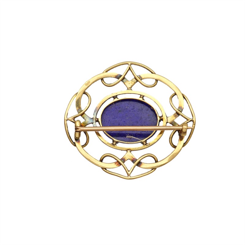 č. 182 524 Starožitná zlatá brož s lapisem lazuli