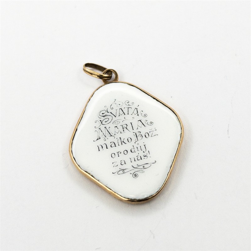 Starožitný zlatý přívěs - madonka, zlato o ryzosti 14 karátů 585/1000 o celkové hmotnosti 5,70 g, rozměry madonky: 3,8 x 2,5 cm ( rozměr včetně závěsného ouška ) Atest Puncovního úřadu