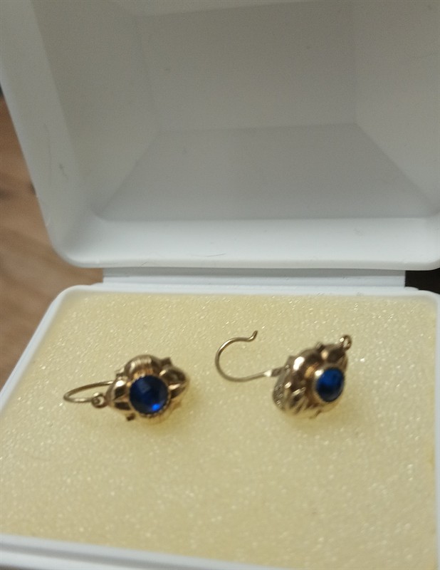č. 181 888 Starožitné dětské náušnice zlato modrý kámen