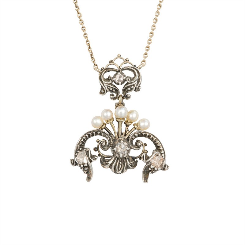Starožitný náhrdelník s přírodními diamanty a perlami