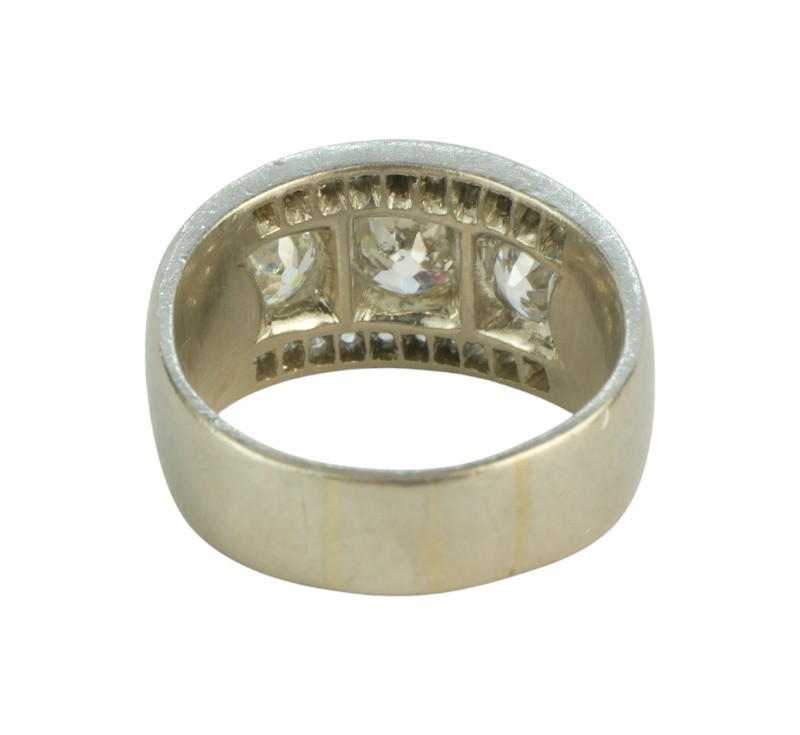 Starožitný prsten vyrobený z platiny je osazen přírodními diamanty starého briliantového brusu o celkové vypočtené hmotnosti 1,31 ct, Pt o ryzosti 950/1000 o celkové hmotnosti 11,18 g, centrální briliant má vypočtenou hmotnost 0,51 ct, dva vedlejší brilianty pak 0,30 ct každý, kolem nich je pak zasazeno dalších dvacet briliantů 0,01 ct, velikost prstenu je 49-50, Atest Puncovního úřadu.