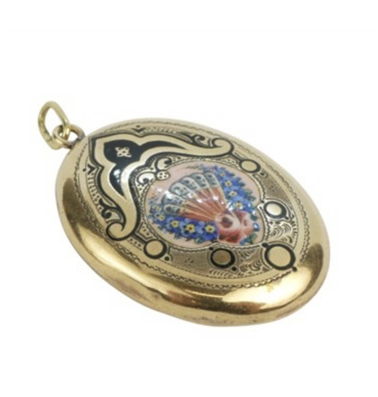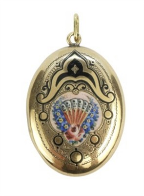 č. 182 116 Starožitný pozlacený medailon se smaltem