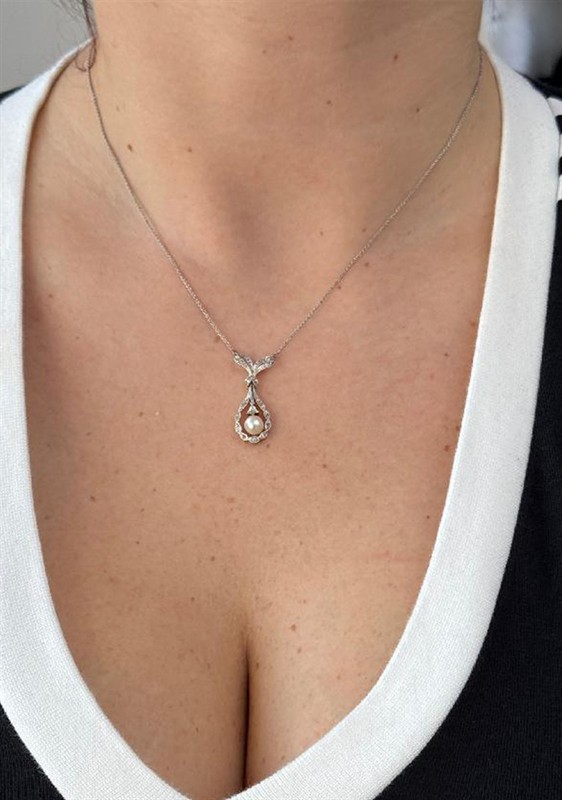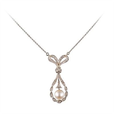 č. 179 738 Starožitný zlatý náhrdelník s diamanty a perlou Akoya