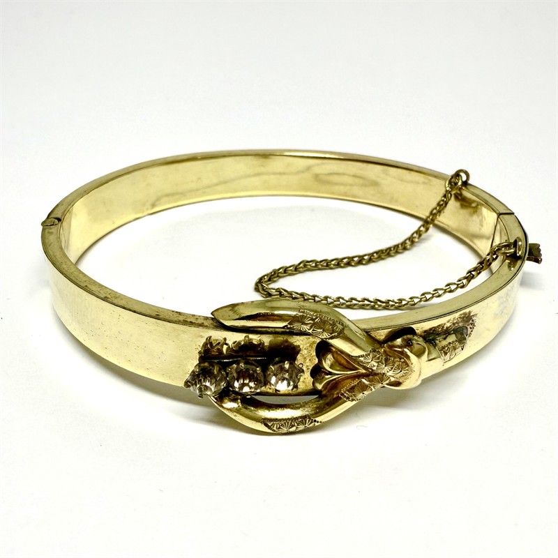 č. 180 795 Starý zlacený kruhový náramek s čirými kameny