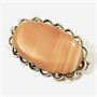 Elegantní brož z období pozdního art-deco, osazeno přírodním českým achátem výjimečného pleťového zbarvení, který je oválného zaobleného plochého brusu a fasovaný několika krapnami, minimalistický rámeček s prořezávanými obloučky. Designem nadčasový, kvalitně zpracovaný šperk z dílny z pražského klenotníka Ladislava Neumanna z let 1941-1944. Zhotoveno z nezlaceného stříbra o ryzosti 835/1000; protektorátní punc S-52 (šachovnice 4), ryzostní číslo a mistrovská značka "LN" zezadu a na jehle. Hmotnost 7,77 g, délka 40,5 mm, šířka 26 mm. Zapínání v pořádku, trombónová pojistka volnější (při nošení drží lépe), celkově ve velmi zachovalém stavu, odborně vyčištěno a vyleštěno zlatníkem.
