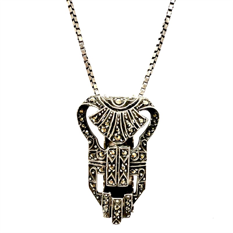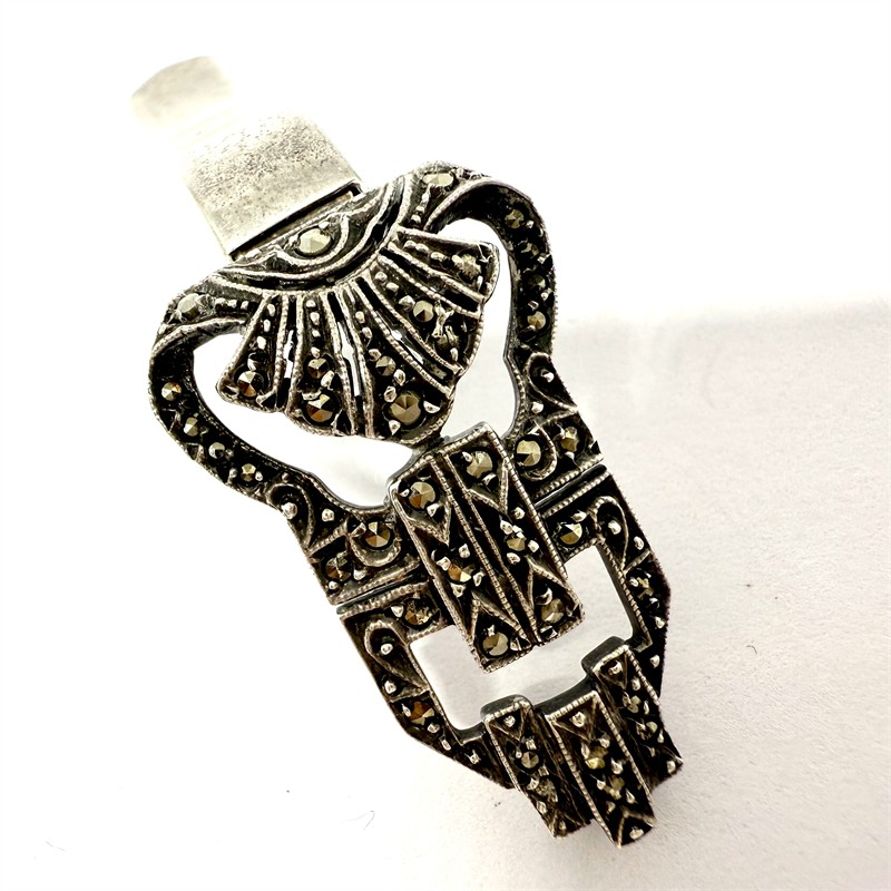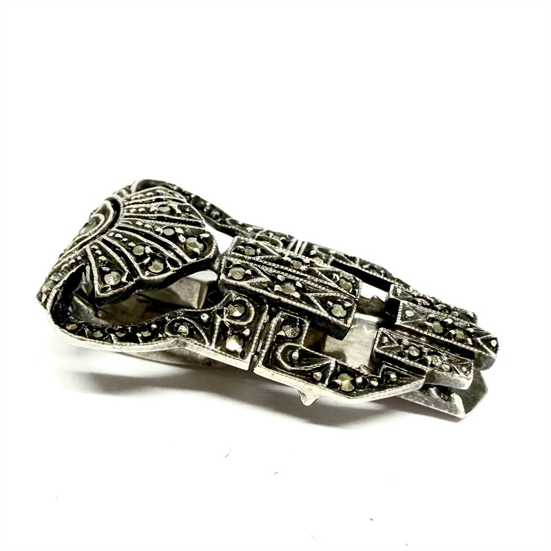 Stříbrná Art deco klipsová spona / závěs s markazity