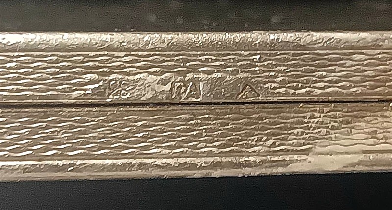 Stříbrná artdeco schránka na vizitky, ap. Značeno puncem Slovenského štátu, ryzostí 835, značkou výrobce PA. Rozměr 7,5 x 5,5 cm. Hmotnost 75,2 gr.