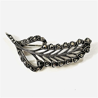 Půvabná brož ve tvaru obilného klasu, osázeno přírodními markazity kulatého hvězdicového brusu a zušlechtěno zrnkováním. Patrně německá práce z 2. třetiny 20. století. Zhotoveno z nezlaceného stříbra o ryzosti 925/1000, jehla z obecného kovu; nově opatřeno puncem S-61 (kozlík 2), švédský dovozový punc s písmenem "S" (silver) zespoda, nově označeno "MET" na jehle. Hmotnost 5,24 g, délka 47 mm, šířka 19 mm. Zapínání na „C“ sponu v pořádku, v minulosti upravováno, ponecháno s přirozenou patinou, lze vyčistit, celkově v dobrém stavu, restaurováno.