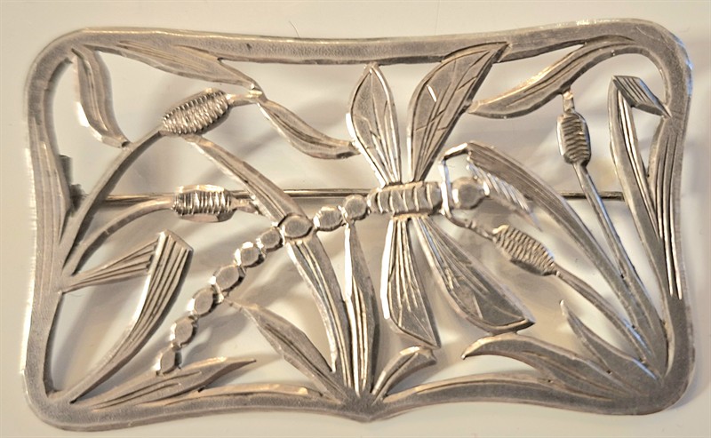 č. 181 486 Stříbrná brož - letící vážka v rákosí