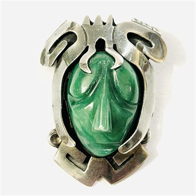 č. 179 493 Stříbrná brož/přívěšek "maska" s jadeitem