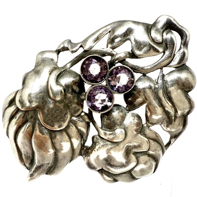č. 180 146 Stříbrná brož s ametysty -Theodor Fahrner