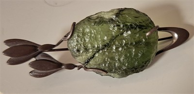 č. 180 699 Stříbrná brož s lotosovými květy a vltavínem,