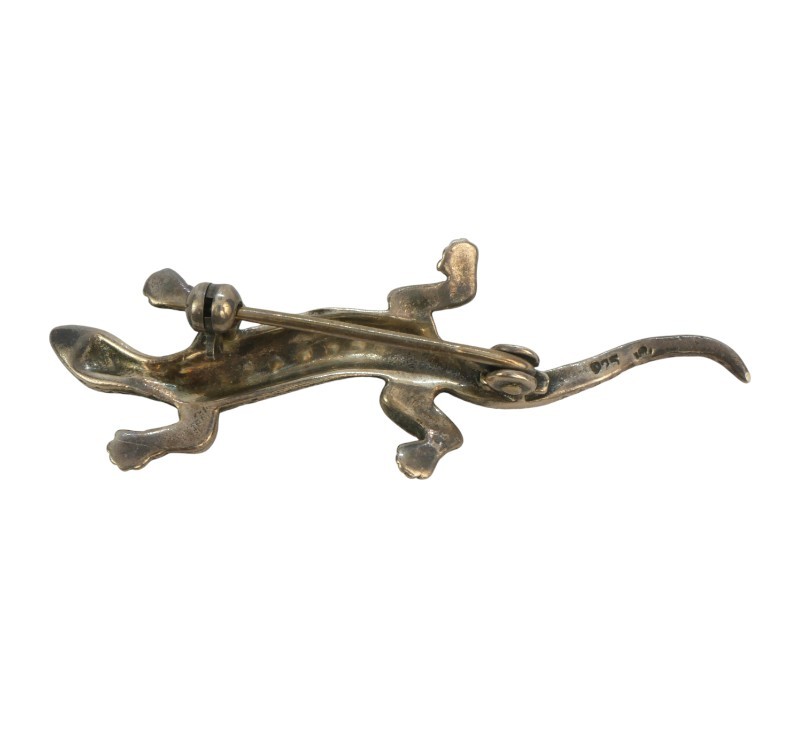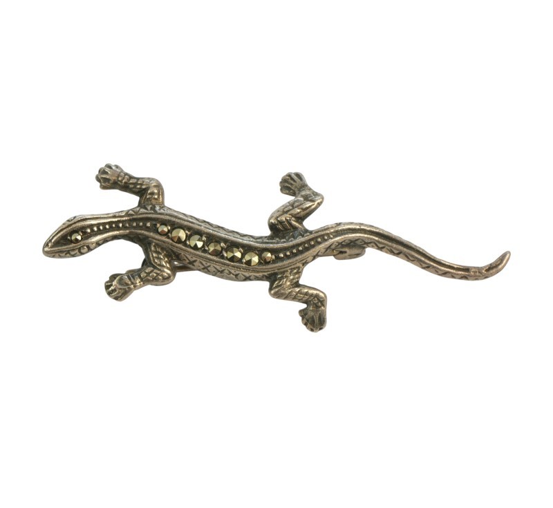 Stříbrná brož s markazity, ještěrka