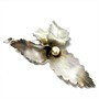 Výrazná, efektní stříbrná brož s bílou perlou - květ. Šperk byl vyroben ze stříbra ryzosti 935/1000, o celkové váze 13,43 g. Rozměry cca 7 x 4,5 cm. Výborný stav.