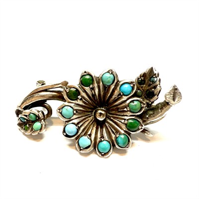 č. 180 446 Stříbrná brož s tyrkysy - květina