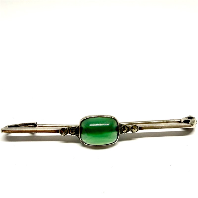 Stříbrná brož se zeleným chalcedonem