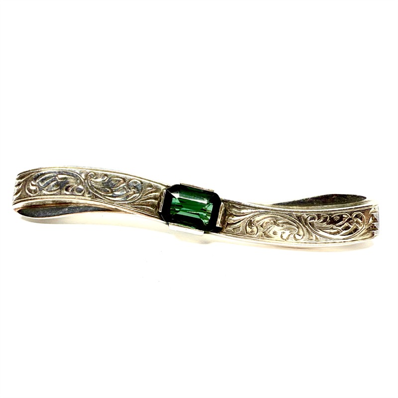 č. 180 718 Stříbrná brož se zeleným spinelem - mašle