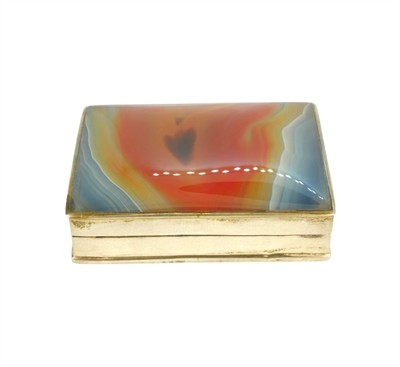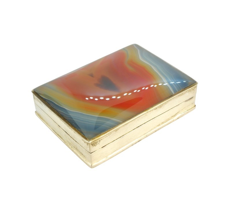 Krabička (lékovka) ze stříbra ryzosti 925/1000 zdobená achátem. Celková hmotnost je 54,24 g. Rozměry jsou 5,7 x 4,2 cm.